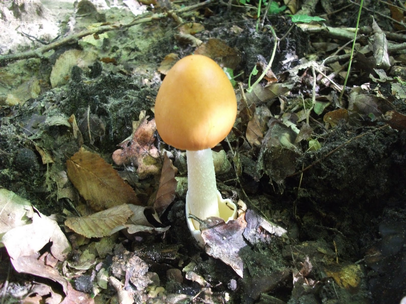 L`AMANITE VAGINEE OU ENGAINEE . TRES REPANDUE DANS LES FORETS DE FEUILLUS , LAMELLES LIBRES , BLANCHES, MOLLES , PIED ELANCE, ELEVE, RETRECI VERS LE HAUT, BLANC OU AVEC DES RETICULATIONS DE LA COULEUR DU CHAPEAU, CREUX A L`INTERIEUR.. VOLVE ENGAINANTE ENSERRANT LA BASE DU PIED . CHAIR BLANCHE TENDRE ET COMESTIBLE , UTILISEE DANS DES MELANGES, ET OUI !!