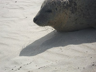 ESTUAIRE DE LA CANCHE .. LES PHOQUES PROFITENT DU TIMIDE RAYON DE SOLEIL ..